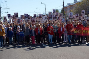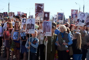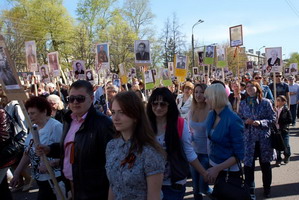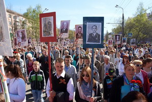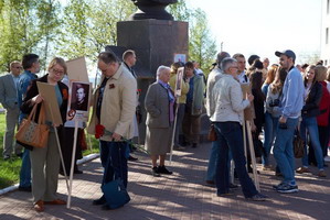 9 мая 2013 г. в городе Владимире к Вечному огню торжественно прошел «Бессмертный полк». Стать в его ряды мог каждый желающий. При одном условии - он должен был нести в колонне транспарант (фотографию) своего солдата, ветерана той войны, который уже никогда сам не сможет пройти на параде. В едином строю люди пронесли около 400 фотографий, в колонне прошли около 900 человек, ведь на праздник приходили целыми семьи. Фотографии ветеранов несли и рабочие, и служащие, и пенсионеры, и студенты, и школьники, и чиновники. Никто не остался равнодушным.