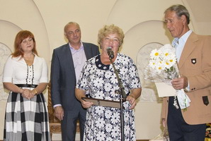 Зампред горсовета Лариса Пышонина от имени главы города Владимира Ольги Деевой и всего депутатского корпуса пожелала семейным парам жизненного пути, усыпанного ромашками, которые символизируют чистоту, красоту и искренность.